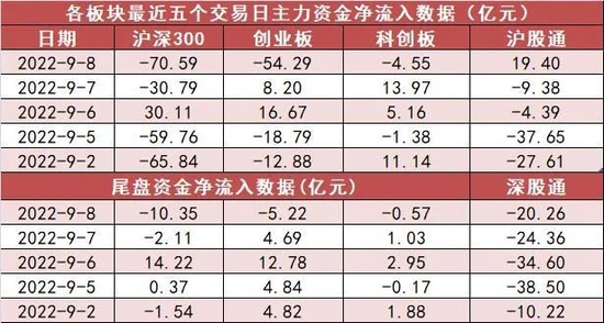 沪深300今日主力资金净流出70.59亿元,创业板净流出54.29亿元,科创板净流出4.55亿元。沪股通净流入19.4亿元,深股通净流出20.26亿元。