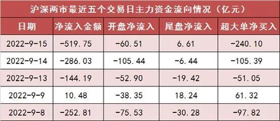 今日沪深两市主力资金开盘净流出60.51亿元,尾盘净流入6.61亿元,两市全天资金净流出519.75亿元。