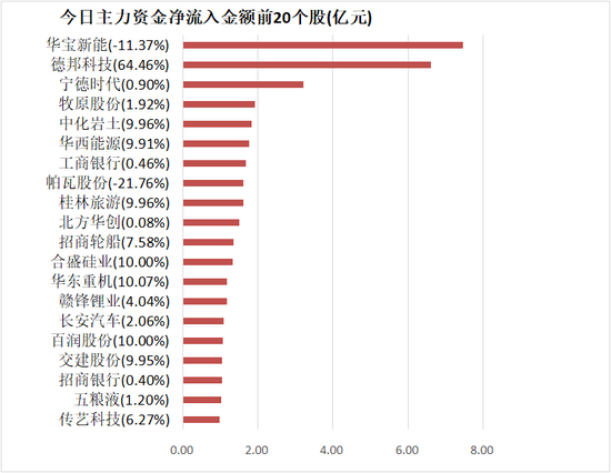 盘后龙虎榜数据显示,机构现身23股,其中华宝新能等12股现机构资金净买入,华大智造等11股呈现机构资金净卖出。