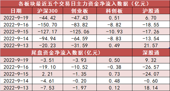 沪深300今日主力资金净流出44.42亿元,创业板净流出47.43亿元,科创板净流入0.51亿元。沪股通净流入6.7亿元,深股通净流入9.32亿元。