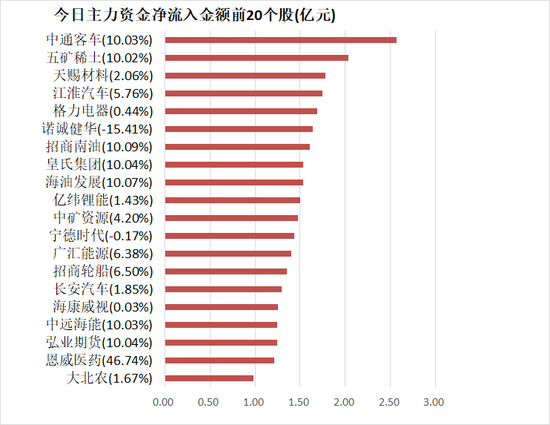 4、中通客车主力资金净流入2.57亿元居首