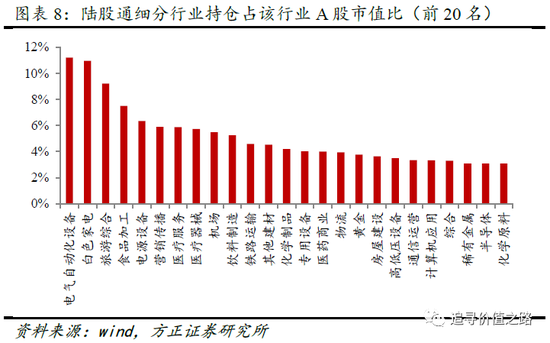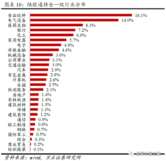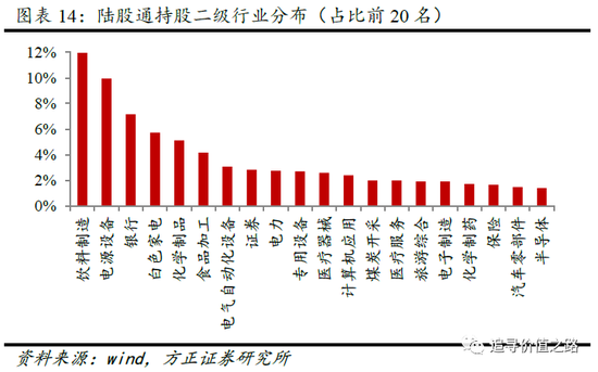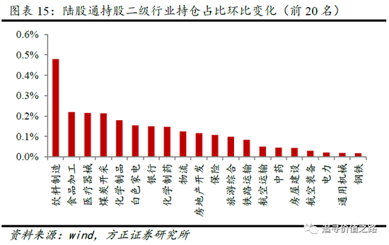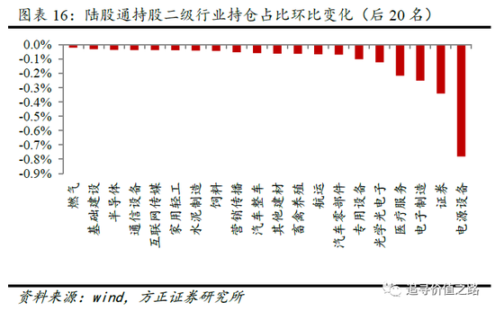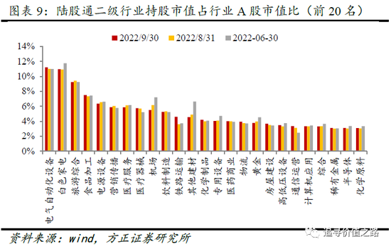 从陆股通持仓占比的变化角度来看,9月份主板占比小幅上升,创业板占比继续下降。具体而言,截至9月30日,陆股通持股总市值中,主板持股市值占84.4%,较上月上升0.8%;创业板持股市值占15.6%,较上月下降0.8%。