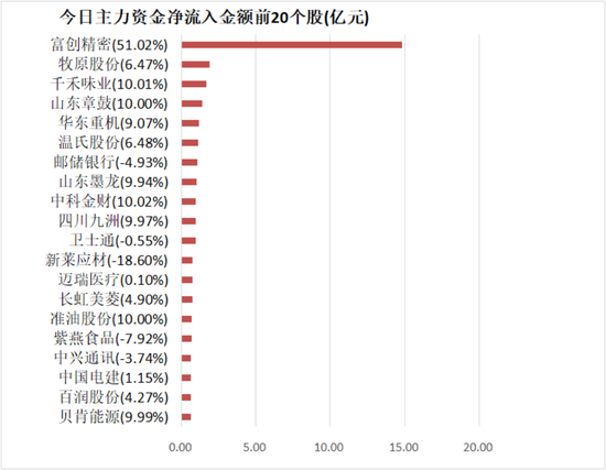 4、富创精密主力资金净流入14.85亿元居首