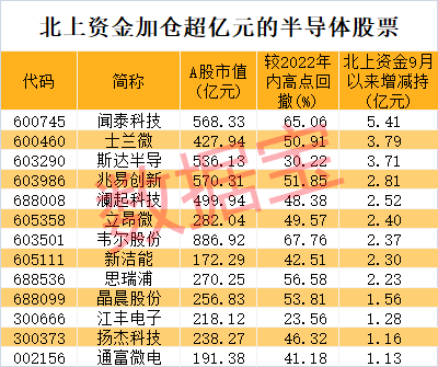 北上资金近期也悄然加仓芯片板块。数据宝统计,按照区间成交均价计算,9月以来半导体股票合计获得北上资金增持23.59亿元。13股获北上资金加仓超亿元,包括闻泰科技、士兰微、斯达半导、兆易创新、澜起科技等。在此期间,融资客同步加仓超亿元的个股有韦尔股份、北京君正。