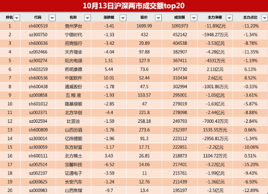 另有16只股票呈现主力资金净流出,其中贵州茅台主力流出净额超11亿元;天齐锂业主力流出净额超4亿元;招商银行、宝馨科技主力流出净额超3亿元;北方华创、东方财富、山西焦煤主力流出净额超2亿元;五粮液、隆基绿能、证通电子、长安汽车主力流出净额超1亿元;宁德时代、阳光电源、通威股份、比亚迪、亿纬锂能主力流出净额不足1亿元。