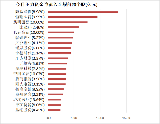 今日沪深两市主力资金开盘净流入7.02亿元,尾盘净流入14.91亿元,两市全天资金净流入204.77亿元。