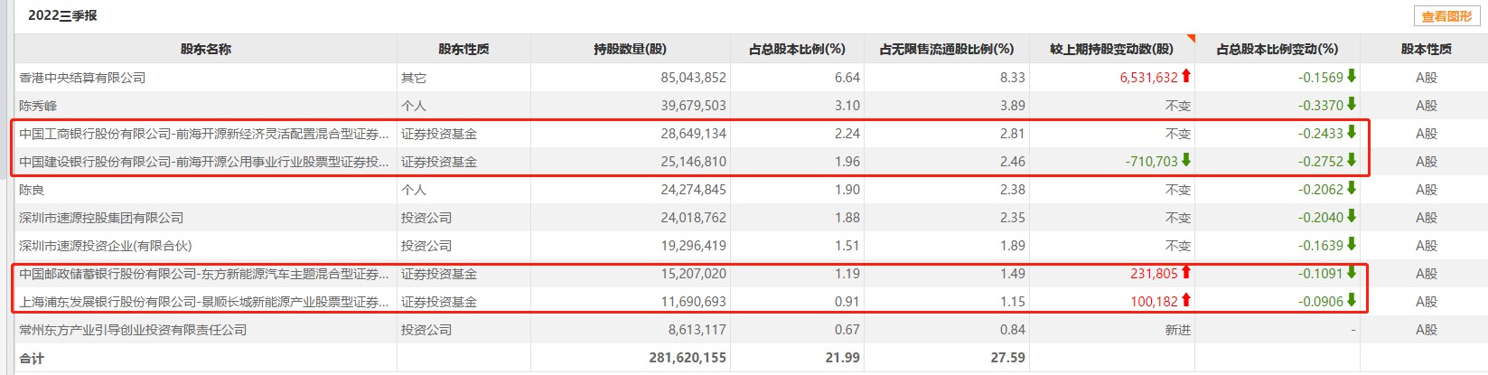 与此同时,崔宸龙却在三季度减持了星源材质71.07万股,截至三季度末,其管理的前海开源公用事业股票基金和前海开源新经济混合基金合计持有约5382.59万股,分别为星源材质的第三大、第四大流通股东。