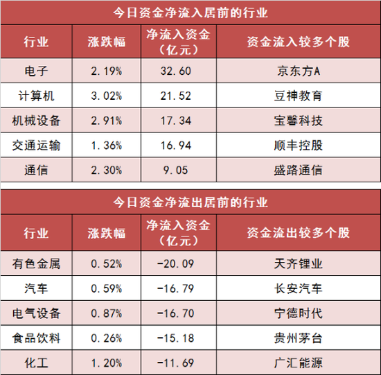 【17日资金线路图】两市主力资金净流出,电子等科技板块受青睐