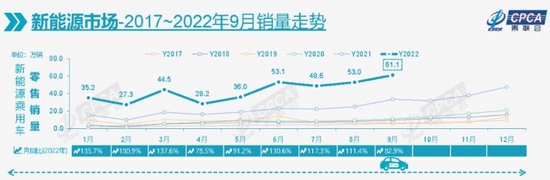 乘联会日前公布的9月全国乘用车市场数据显示,9月国内新能源乘用车零售销量达61.1万辆,同比增长82.9%,环比增长14.7%;当月新能源车国内零售渗透率达31.8%,较2021年9月提升约11个百分点。