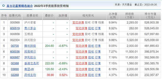 先来看张坤管理时间最长的、易方达优质精选混合,三季度的前十大重仓股与二季度末时一致,只是在个股的持仓和排位上有所不同。