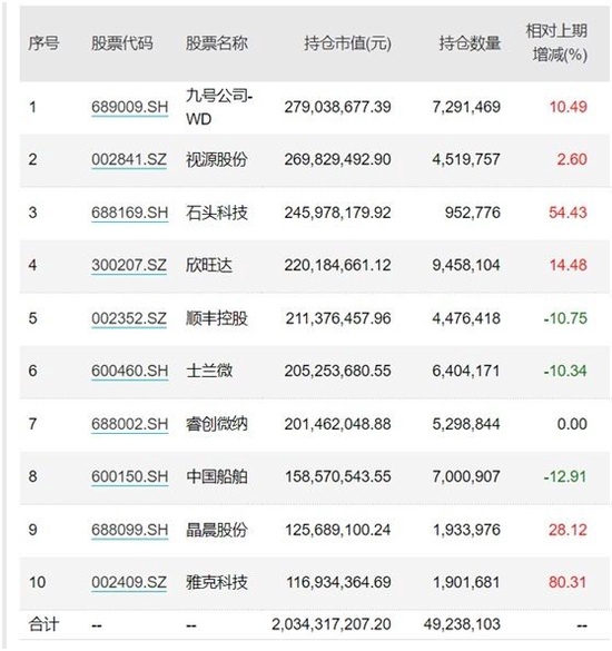 在其他个股方面,主要是加减仓的变化,其中九号公司、石头科技、视源股份、欣旺达都有所加仓,顺丰控股、中国船舶、士兰微则是有所减仓。
