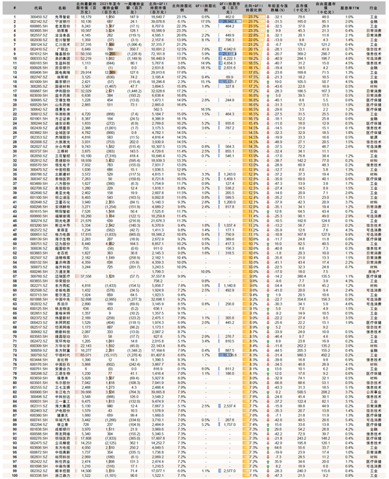 图表20:2021年末、今年9月末和10月21日的北向资金持股对比