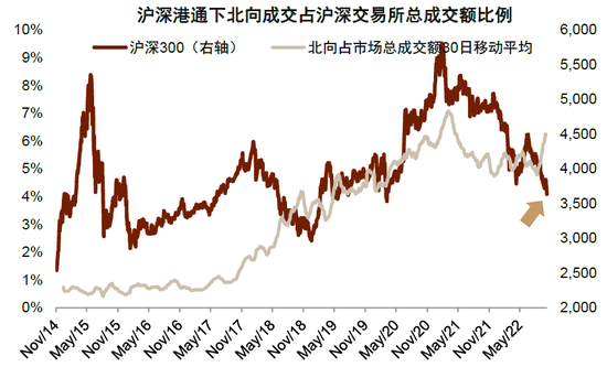图表15:今年北向资金转为净流出,但交易占比持续抬升
