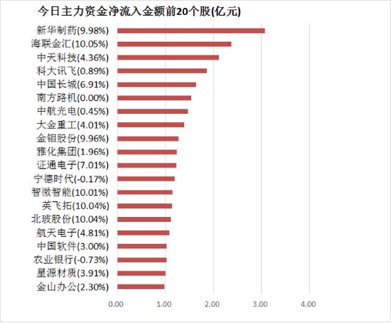 4、今日主力资金净流入居前20股