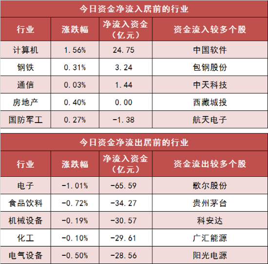 3、计算机等少数板块实现净流入