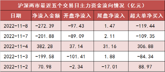 今日沪深两市主力资金开盘净流出97.43亿元,尾盘净流入1.47亿元,两市全天资金净流出272.39亿元。