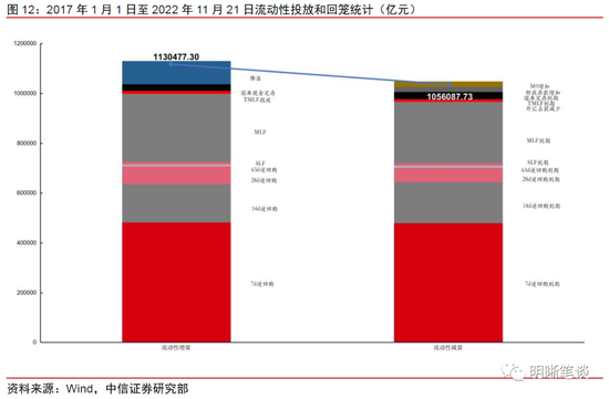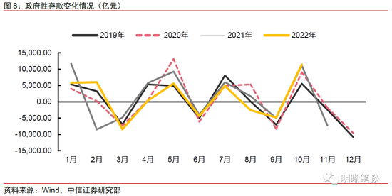 央行利润上缴已经结束,财政支出有所放缓,存量留抵税额集中退还完成。根据央行三季度货币政策执行报告,已经提前完成上缴央行结存利润1.13万亿元。此外,财政资金的收支对银行间流动性起到了重要的吞吐作用,受到新冠疫情以及海外风险等因素影响,我国经济增长面临一定的压力,因此财政加大支出以保民生、稳增长。此外,根据央视网记者采访国家税务总局,截至8月15号,今年已有2.1万多亿元留抵退税额退到纳税人的账户,大规模留抵退税存量留抵税额集中退还完成。留抵退税可以视作另一种意义上的“财政支出”,也会释放大量资金,补充市场流动性。从财政存款来看,今年3月至8月,财政存款较往年平均水平而言基本保持少增或多减, 支撑前期宽松的资金面;然而,随着上述因素退去,我们注意到9月和10月财政存款增长已经恢复至往年水平,向市场投放资金的力度明显减弱。