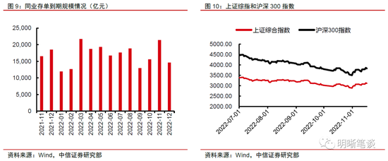 11月同业存单到期规模是下半年高点,叠加信贷投放发力、居民存款搬家等因素,银行资负两端资金匹配的难度加大。8月以来,随着信贷回暖,此前淤积在银行间的流动性得以疏通,资金面边际收紧,短端利率有所上行。尤其是近期“宽信用”政策频出,银行预计后续将有较大的信贷投放,需要提前筹集资金,让负债端在久期、规模等方面与资产端尽可能匹配。然而,今年以来存款利率持续下行,虽然降低了银行的负债成本,但也增大了银行的揽储难度,尤其是权益市场的复苏,很有可能在未来加剧“存款搬家”的问题。此外,11月同业存单到期规模较大,达到了2.14万亿,是下半年最高的单月到期量。同时考虑到提前储备跨年资金的因素,同业存单发行压力不减,银行资负两端资金匹配的难度加大。