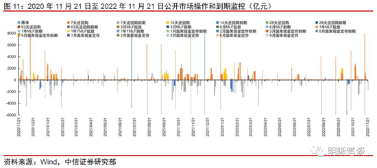 【流动性动态监测】我们对市场流动性情况进行跟踪,观测2017年开年来至今流动性的“投与收”。增量方面,我们根据逆回购、SLF、MLF等央行公开市场操作、国库现金定存等规模计算总投放量;减量方面,我们根据2020年12月对比2016年12月M0累计增加16010.66亿元,外汇占款累计下降8117.16亿元、财政存款累计增加9868.66亿元,粗略估计通过居民取现、外占下降和税收流失的流动性,并考虑公开市场操作到期情况,计算每日流动性减少总量。同时,我们对公开市场操作到期情况进行监控。