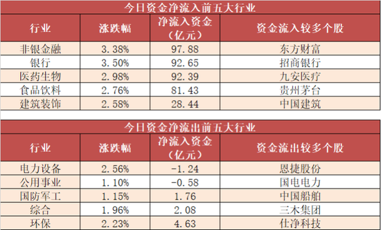 3、银行等多个行业实现净流入