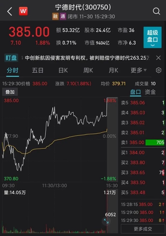 MSCI半年度指数调整今日盘后生效,尾盘集合竞价多只个股大幅波动,其中宁德时代尾盘集合竞价大笔买入4.66亿元,股价从381.9元跳升至385元。
