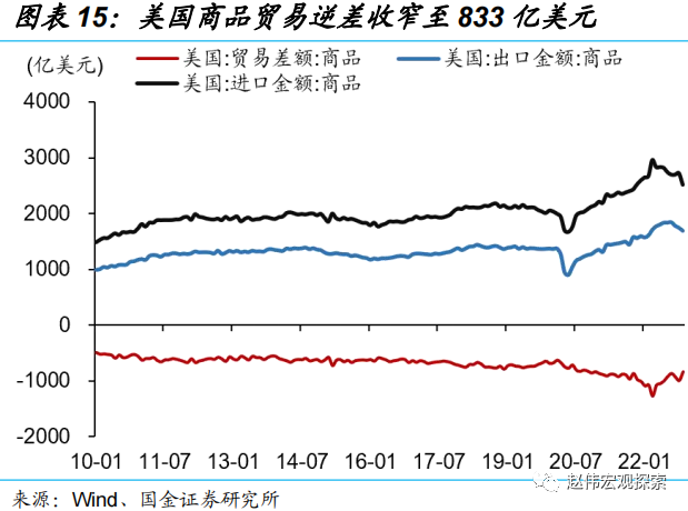 3、贸易:美国进口回落,商品贸易逆差收窄