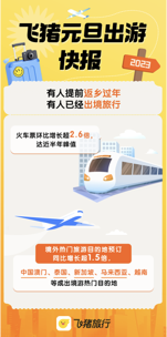 出境游需求也在今年元旦迎来“开门红”。飞猪数据显示,元旦期间境外热门旅游目的地预订量同比增长近2倍,其中泰国、新加坡、马来西亚、越南等是热门出境游目的地。