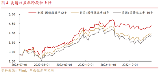 我们认为美债利率当前在筑顶过程中,美联储本轮加息周期将在一季度结束,后续随着美国通胀下行和衰退压力显现,美元指数和美债利率将持续回落,因此海外流动性对A股的扰动将逐步放缓。