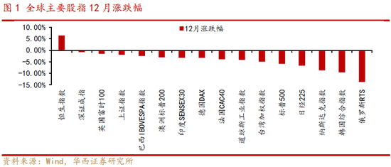 12月全球权益市场普遍调整,港股和A股市场表现相对较好。具体看,美股方面,纳斯达克指数、标普500和道琼斯工业指数分别下跌8.73%、5.9%和4.17%;欧洲股市方面,法国CAC40、德国DAX和英国富时100指数分别下跌3.93%、3.29%和1.60%;日韩股市均大幅调整,韩国综合指数下跌9.55%,日经225指数下跌6.70%。外汇方面,美元指数下行,人民币汇率稳中有升,日元汇率大幅反弹。