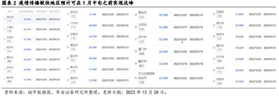 我们的观点:疫情达峰超预期,最迟春节前后完成。一二线城市元旦后、春节前实现达峰,三四线城市最迟春节前后达峰。