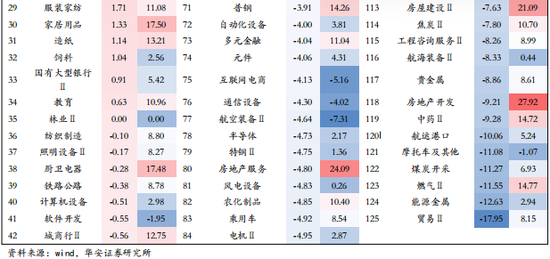 政策力度边际回落,基本面信号未至,地产链本月回调。一方面,市场对地产政策的高预期随着“第三支箭”的正式落地而逐渐转冷回落:11月28日,证监会宣布恢复涉房上市公司并购重组及配套融资、恢复上市房企和涉房上市公司再融资,标志着地产纾困“第三支箭”正式落地,而随着地产纾困政策的陆续发布,本轮由政策驱动的地产链行情也逐渐走向了高潮与尾声。另一方面,地产基本面仍然缺少改善信号,难以对地产链行情形成进一步支撑:①11月全国商品房销售面积同比为-33.26%,较10月(-23.22%)跌幅进一步扩大;②从高频数据看,截至12月31日,30大中城市商品房月成交面积同比-21.98%,跌幅较12月14日(-9.54%)继续走阔。综上,在政策力度边际回落、基本面信号暂未出现的双重压制下,地产链相关板块本月表现不佳,一级行业中的房地产(-9.07%)、建筑装饰(-7.02%),二级行业中的房地产开发(-9.21%)、房屋建设(-7.63%)等均跌幅居前。