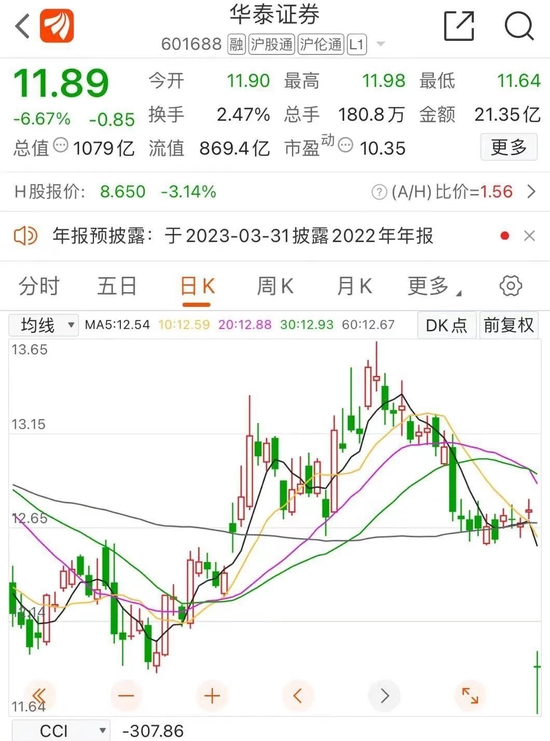 1月3日是A股2023年首个交易日,三大指数低开高走,收获“开门红”。但是,华泰证券A股却逆势大跌,盘中跌幅一度超过8%。截至收盘,华泰证券A股跌近7%,A股市值跌去近90亿元;港股方面,华泰证券H股截至发稿跌近3%。