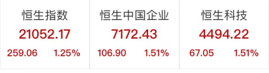 截至收盘,恒生指数收涨1.25%,涨259.06点,报21052.17点;恒生科技指数涨1.51%,报4494.22点;恒生国企指数涨1.51%,报7172.43点,均录得4连涨。根据万得数据,大市成交额升至1741.64亿港元,交投升温。