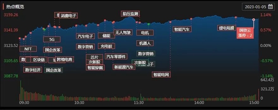 周四(1月5日),A股三大指数震荡上行,全线飘红。截至收盘,上证指数涨1.01%报3155.22点,深证成指涨2.13%报11332.01点,创业板指涨2.76%报2399.46点;两市合计成交8427亿元,北向资金净买入127.53亿元。总体上看,两市个股涨多跌少,上涨个股近3000只。其中,涨停个股达52只,跌停个股达9只。