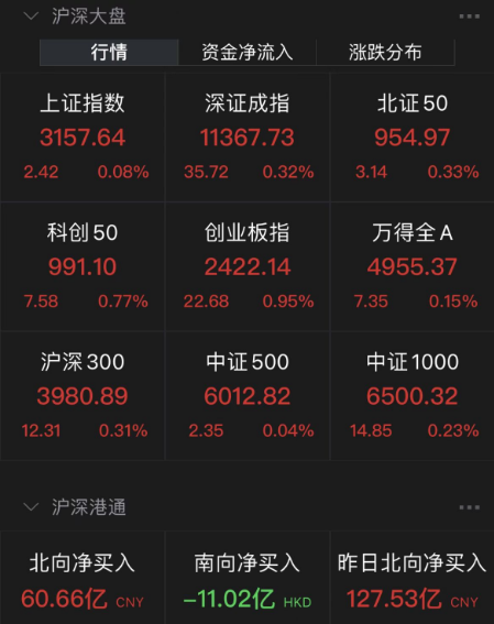沪深两市今日成交额8380亿,较上个交易日缩量47亿。北向资金全天净买入60.66亿元,其中沪股通净买入44.72亿元,深股通净买入15.95亿元。