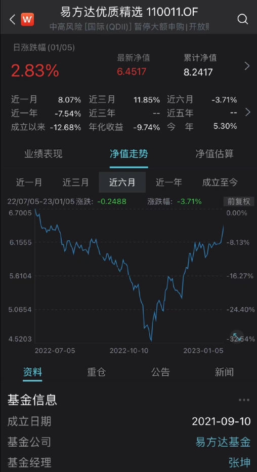 比如可能暌违已久的“公募一哥”张坤,受益于港股和白酒股的大涨,就回血了不少。数据显示,截至2023年1月5日,自去年11月1日以来,张坤管理的易方达优质精选净值增长率高达42.73%。他所管理的其他基金净值也有不小的反弹。