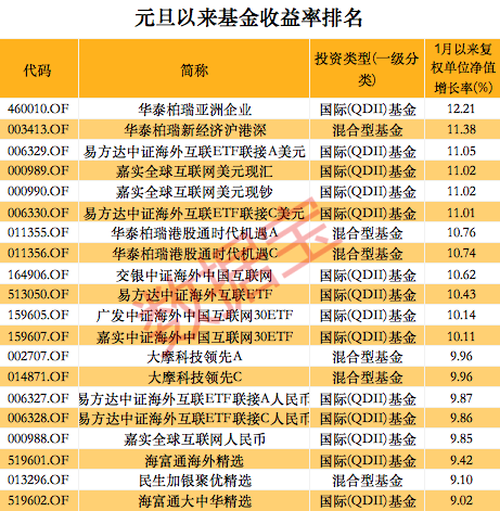随着节后行情回暖,不少公募基金净值回血。证券时报·数据宝统计,超过九成基金元旦以来净值收益率为正。其中超6000只基金收益率跑赢同期上证指数,12只基金收益率在10%以上。数据宝统计,这12只收益率10%以上的基金9只属于国际(QDII)基金,另外3只属于混合型基金。