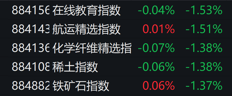 下跌方面,教育股陷入调整,航运、抗病毒面料、物流等板块跌幅居前。