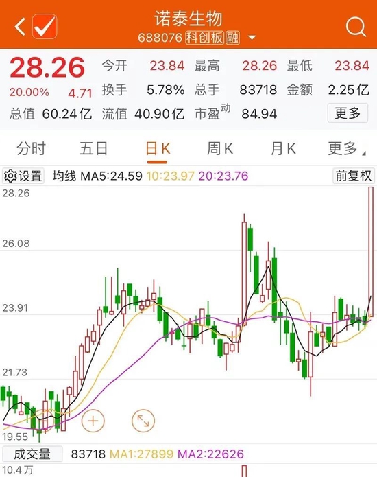 诺泰生物20cm涨停