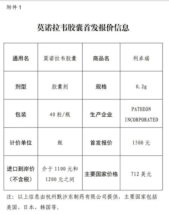 首发报价1500 元/瓶,比辉瑞的便宜