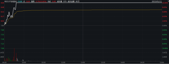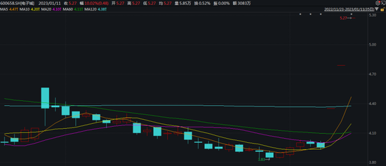 电子城亦连续三日涨停,截至收盘,该股报5.27元,涨停板上封单近100万手。公司6月晚间披露业绩预告,公司预计2022年度实现归属于上市公司股东的净利润为4.7亿元—6.8亿元,同比增加1388.52%—2053.6%。