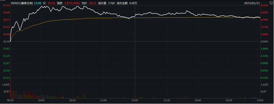 值得注意的是,昨日晚间预告大幅亏损的康泰生物股价今日也大幅拉升,盘中最高涨超8%。截至收盘,该股报36.26元上涨5.44%,最新市值406亿元。