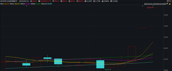 东尼电子已连续3个交易日涨停,截至收盘,该股报80.65元,逼近历史新高。