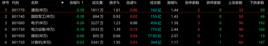 下跌方面,通信、国防军工、电子、电力设备、煤炭、计算机等板块跌幅居前。
