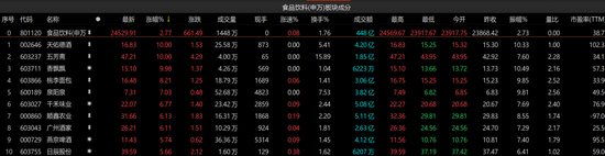 食品饮料板块以2.77%的整体涨幅收涨,板块内107只个股收涨,仅9只个股收跌。其中,天佑德酒、五芳斋、香飘飘涨停,桃李面包、泉阳泉、千禾味业、顺鑫农业、广州酒家涨超6%。贵州茅台收涨2.89%,收盘报价1887元/股,最新市值23704亿元。