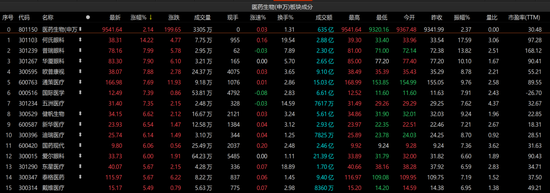 另外,医药股方面今日也有不俗的表现。医药生物板块今日整体涨幅达2.14%,涨幅也相对靠前。板块内299只个股收涨,50只个股收跌。其中,何氏眼科大涨14.22%,普瑞眼科、华厦眼科、欧普康视、通策医疗(维权)、国际医学(维权)、五洲医疗涨超7%。