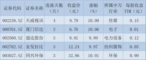 涨停股方面,今日有38只个股以涨停价报收,其中,有5只个股股价已连续上涨超过3个交易日;跌停方面,有10只个股以跌停价报收。从申万一级行业看,电力设备行业涨停股数量居首,为6只,此外,食品饮料、轻工制造、汽车、非银金融、纺织服饰、电子和传媒行业涨停股数均为3只。