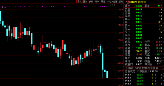 二级市场上,发布定增预案次日,怡合达大跌近7%,该股周跌幅约11%,现价60.15元/股,最新市值约290亿元。