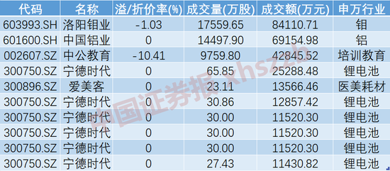 从机构专用席位单笔卖出成交额来看,截至1月13日,洛阳钼业的大宗交易成交额为8.41亿元,居于第一位;中国铝业、中公教育、宁德时代等公司的成交额较高,均超过2亿元。