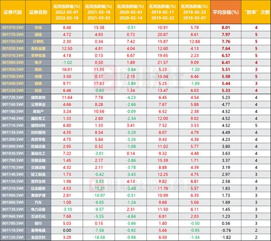 一般来说,春节之后,市场较高的“胜率”一方面带动市场集体走高,另一方面也拉动一些板块迎来爆发。从行业层面来看,近五年的行情中,环保、通信、计算机、有色金属、农林牧渔、电子等板块在节后十日的表现较好,其平均涨幅均超6%,且“胜率”(上涨)次数也较高。其中,在2019年的节后行情中,通信、电子两个行业板块在节后是个交易日内均累计拉涨20%以上,一度成为当时的明星赛道。